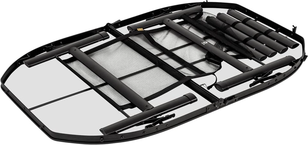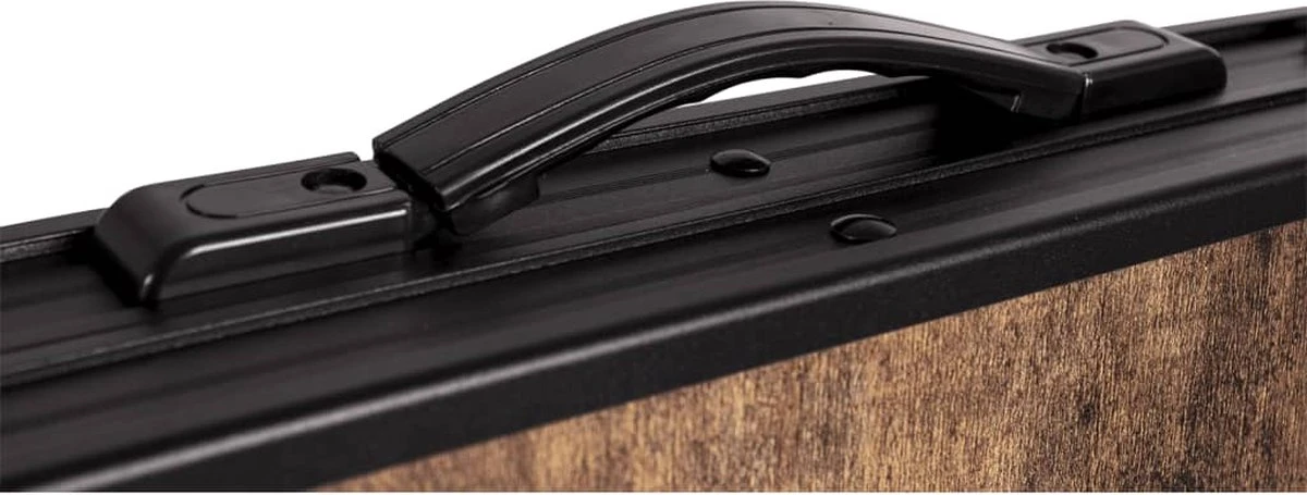 Kleur: zwart en bruin Materiaal: MDF en aluminium Afmetingen: 120 x 80 x 70 cm (L x B x H) Afmetingen (ingeklapt): 80 x 60,5 x 7 cm (L x B x H) In hoogte verstelbaar: 37/70 cm Compact en stevig Extra fijne afstelling met de draaischroeven Verwijderbare poten Deelbaar blad Stevig handvat Met een net voor het opbergen van spullen Gewicht: 7,2 kg Eenvoudig mee te nemen als koffer