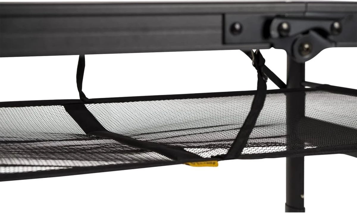 Deze Bo-Camp Melrose inklapbare campingtafel is een trendy tafel van MDF en aluminium. Hij heeft een industriële uitstraling en een hout-look tafelblad. De Melrose is een compacte klaptafel die is ontworpen met nauwkeurig af te stemmen stelschroeven die aanpassing op oneffen oppervlakken mogelijk maakt. De tafel heeft een net onder het MDF blad om spullen op te bergen. De afneembare poten en het deelbare blad maken een compacte opslag als koffermodel mogelijk. Deze campingtafel is in 2 hoogtes verstelbaar. Door de handige zijgreep is hij gemakkelijk mee te nemen.