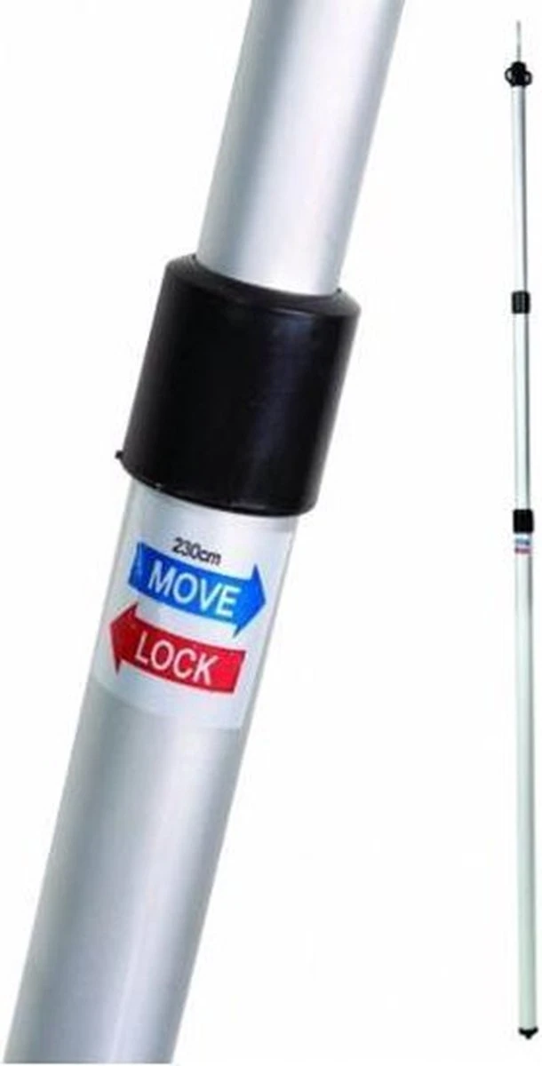 Universele telescopische tentstok / tarpstok. Een extra stok ter versteviging van een voortent of een tarp. Deze stok bestaat uit 3 delen die makkelijk in elkaar te zetten zijn. De stok is in hoogte verstelbaar van 93 tot 230 centimeter. Voorzien van een stokpunt met een antislip profiel.