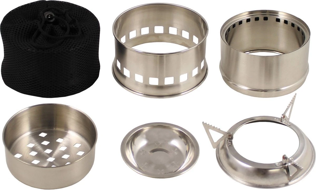 Met zijn demonteerbare ontwerp is deze houtbrander zeer compact en eenvoudig op te bergen, waardoor het de ideale keuze is voor iedereen die ruimte wil besparen tijdens het reizen. De opvouwbare potsteun zorgt voor extra stabiliteit en ondersteuning bij het koken, terwijl de transporttas ervoor zorgt dat je hem gemakkelijk overal mee naartoe kunt nemen.