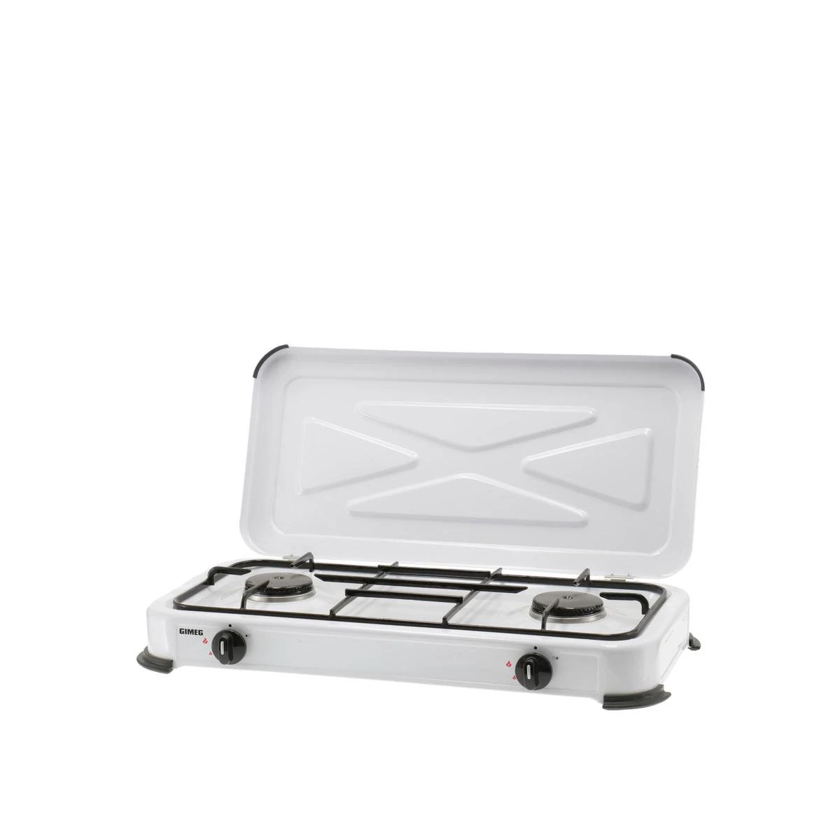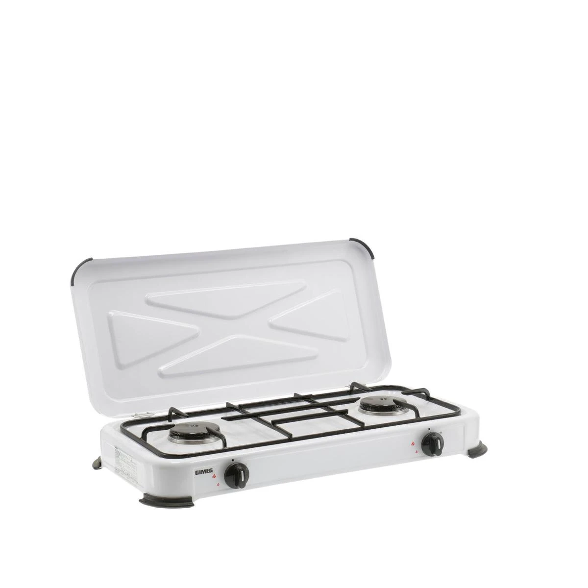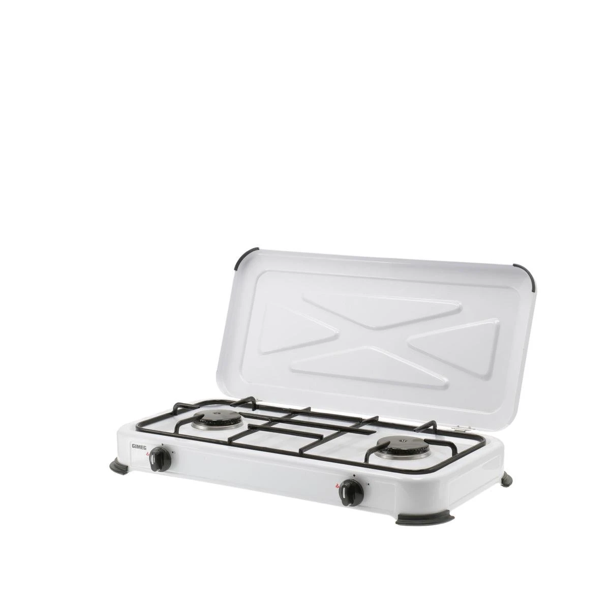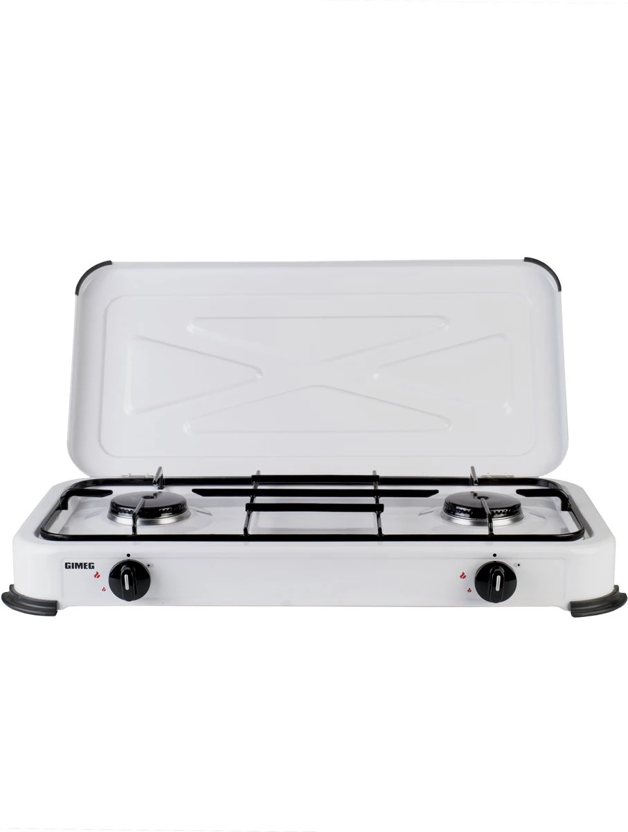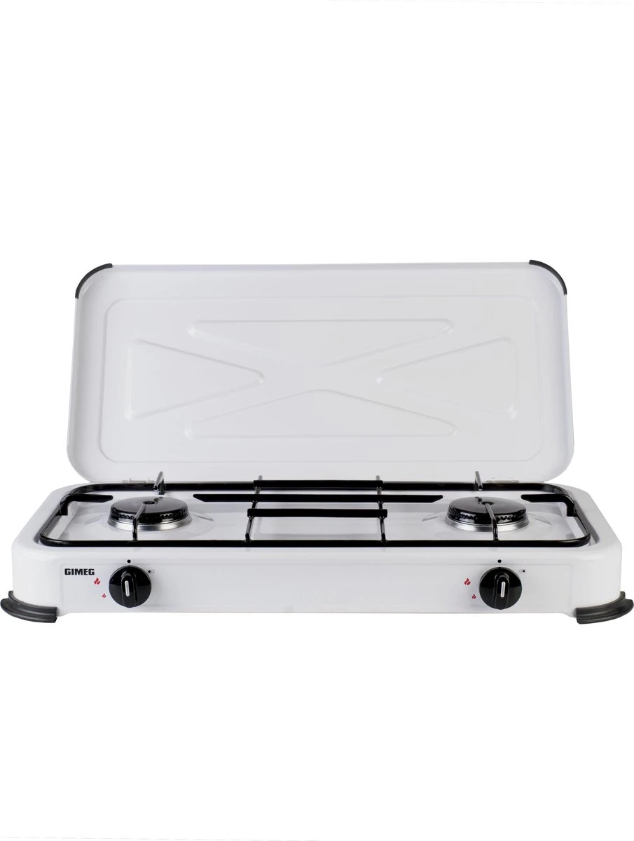 Het Gimeg kooktoestel is voorzien van twee extra sterke 2,2 kw branders voor een optimale kookervaring. Het kooktoestel is voorzien van een stabiele pannendrager die ruimte biedt aan twee grote pannen. Dankzij de ingebouwde elektronische batterijontsteking ontsteek je het toestel veilig en eenvoudig. Nog meer veiligheid wordt geboden door de antislipvoetjes aan de onderkant van het kooktoestel. Het toestel blijft stabiel op zijn plek staan.