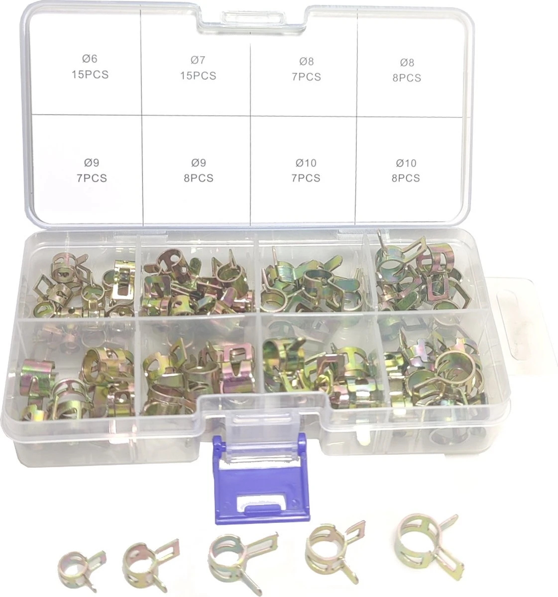 Merkloos Veerslangklem Verzinkt 75 Delig Brandstofleidingen Benzineslang Vacuumslang 6 7 8 9&10mm Slangenklem Knijpveerklem