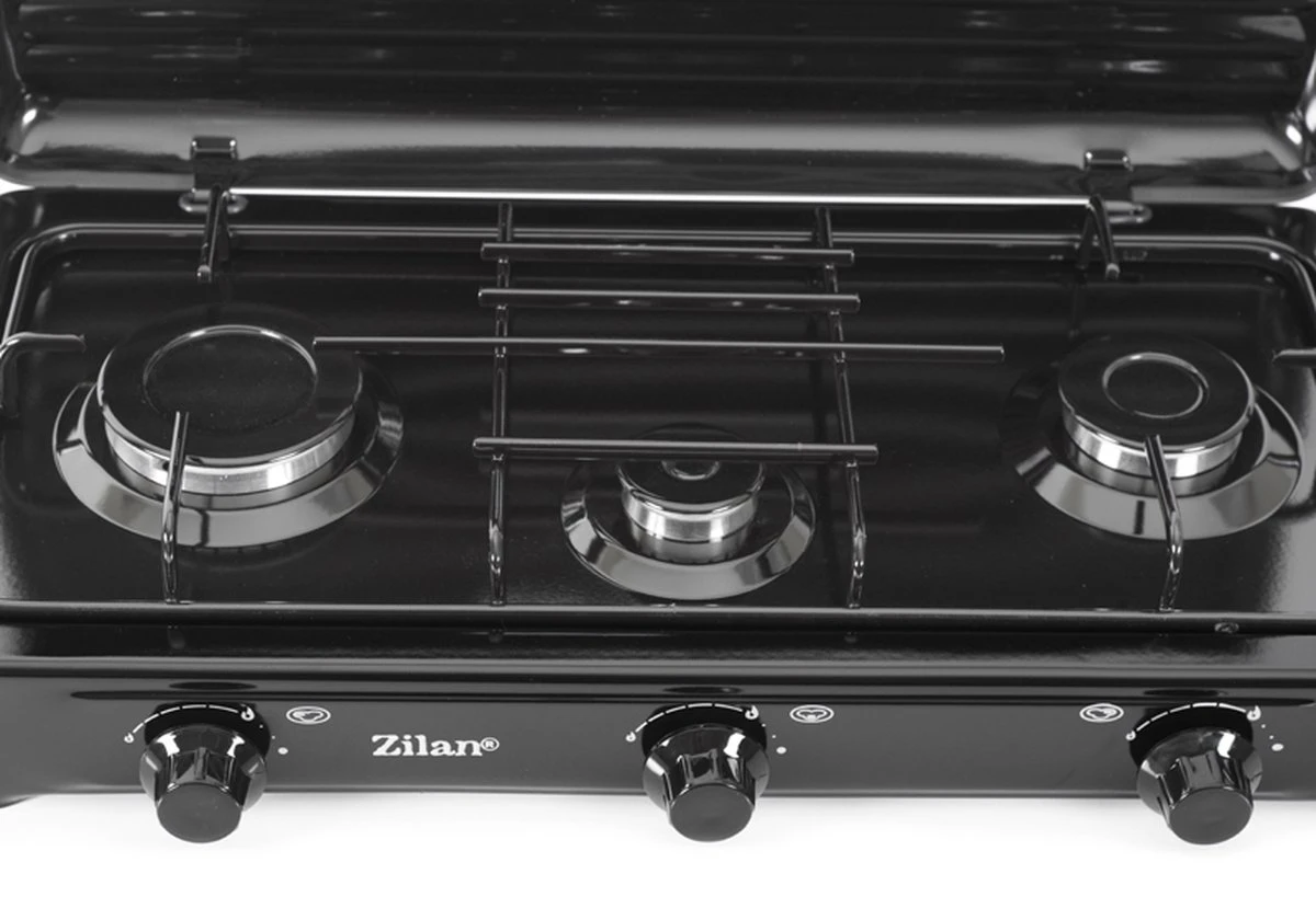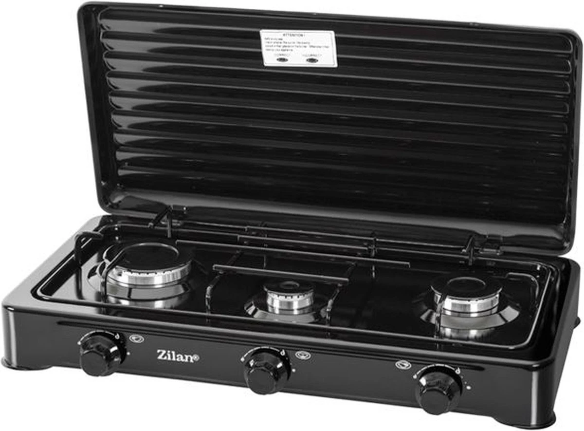 Robuuste en ruime 3 pits campingkooktoestel van Zilan. Ideaal voor op de camping.