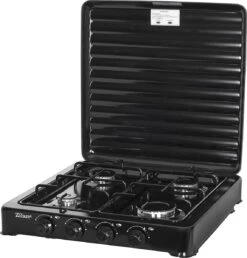 Robuuste en ruime vierpits campingkooktoestel van Zilan. Ideaal voor op de camping.